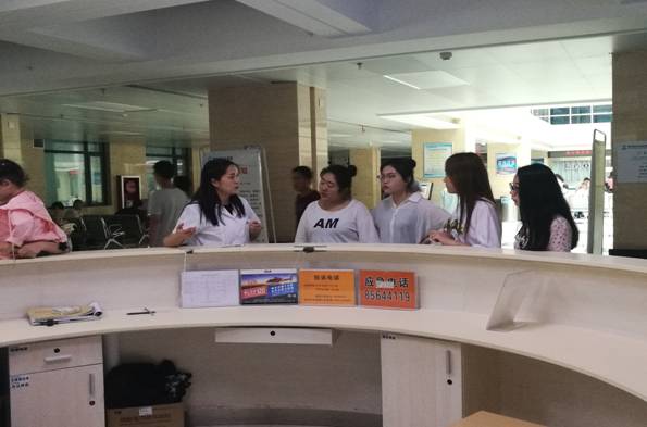 在李博的安排下,首先到会议室观看了西安市航天总医院的发展纪录片,对航天总医院的基本情况及现状有了了解。接着,李博带领大家参观了医院的门诊大厅、肾病内科、急诊科、护士站、医生办公室、治疗室、住院病房等科室。参观过程中,李博给同学们介绍了患者就医流程、各科室功能、护理程序等情况。